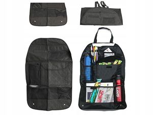 Organizer na fotel samochodowy jest przeznaczony do zamontowania na tył przednich foteli samochodowych. Posiada praktyczne kieszonki wykonane z siatki. Jest doskonały do przechowywania drobiazgów w twoim samochodzie tj: mapy, napoje, długopisy, zabawki dziecka oraz różne drobiazgi.Ochraniacz jest bardzo praktyczny i prosty w montażu, dzięki czemu dobrze przylega do fotela. Po zabrudzeniu można go szybko zdjąć i wyprać.Organizer dodatkowo pełni funkcję pokrowca ochronnego przed zabrudzeniami przedniego fotela, a także zamoczeniem śniegiem, wodą, błotem, solą itp.Specyfikacja techniczna:Wysoka jakość wykonaniaŁatwy i szybki w montażu i demontażuDobrze przylega do fotelaPełni funkcję organizera oraz pokrowca ochronnegoPomaga utrzymać porządek we wnętrzu samochoduŁatwy w czyszczeniu - wystarczy przetrzeć wielokątną szmatką lub umyć pod bieżącą wodąWodoodpornyPosiada 5 kieszeni o różnej pojemności + 3 miejsca na długopisy itp.Kolor: czarnyWymiary: 59cm x 38cmZestaw zawiera:Fabrycznie nowy organizer na fotel samochodowySznurek do montażuOryginalne opakowanie